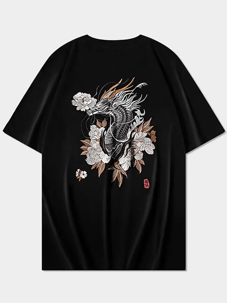 Pure Artistry. Noble Power. Inspired by the elegance of the Orient, this tee showcases a finely embroidered Silver-Scaled Dragon emerging from a garden of White Peonies. It’s a sophisticated fusion of "Graceful Wisdom" and "Unstoppable Strength," crafted for those who value detail and lead with undeniable class.